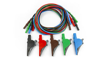 Zestaw: 5 przewodów (czarny, czerwony, brązowy, zielony, niebieski) bananki na bananki; 5 krokodylków; zakres pomiarowy: 36A/1000V; CAT IV 600V/CAT III 1000V; długość przewodów: 2m; max otwarcie krokodylka 4cm |