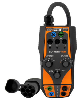 EV-TEST100 w połączeniu z odpowiednim wielofunkcyjnym miernikiem firmy HT (np. MacroTest G3) symuluje pojazd