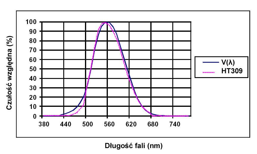 HT309 posiada dodatkowo funkcję pomiaru światłości (wyrażany w kandelach ozn. cd)