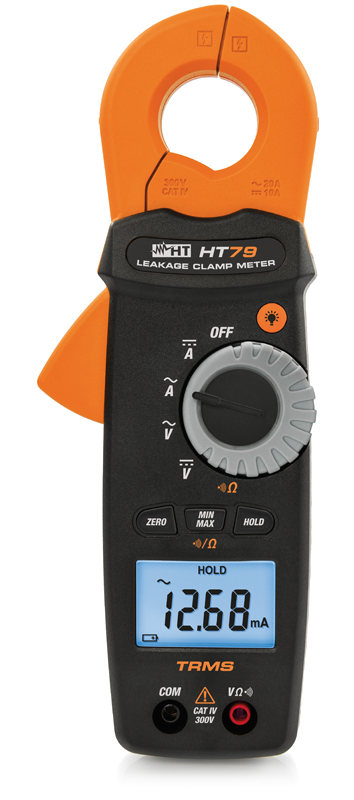 Cęgi HT79 są przeznaczone głównie do pomiaru prądów upływu AC i DC oraz pomiaru prądów do 10A (DC) i 20A (AC), w warunkach przepięciowych według kategorii CAT IV 300V zgodnie z IEC / EN61010-1.