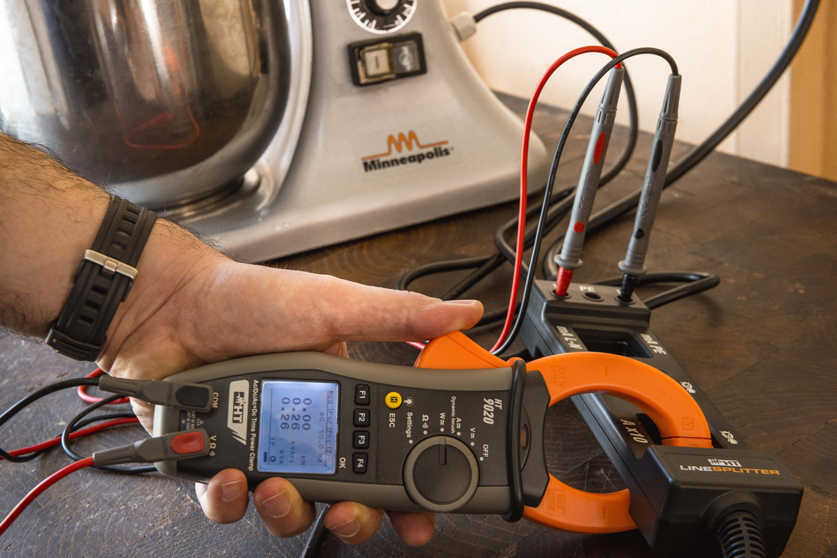 między gniazdo sieciowe 230V, a badany odbiornik prądu. Może być używana do pomiarów