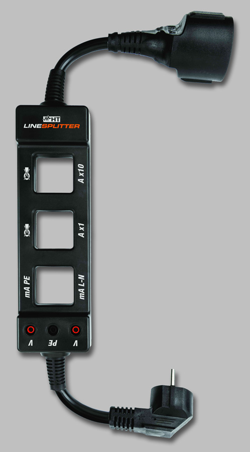 Dodatkowo Linesplitter jest wyposażony w gniazda ułatwiające pomiary napięć (L-N, L-PE, N-PE).
