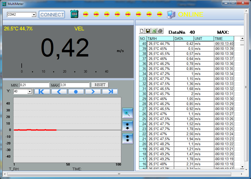 Oprogramowanie MultiMeter umożliwia obserwację oraz rejestrację "on line" wielkości
