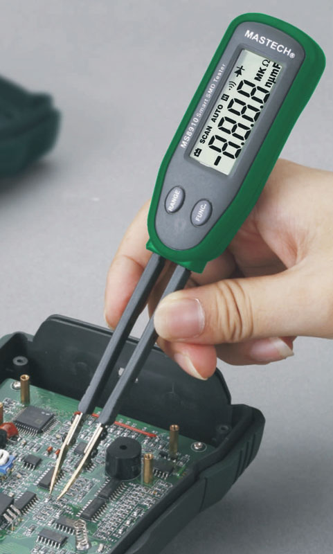 MS8910 jest przyrządem przeznaczonym do testowania elementów montażu powierzchniowego (SMD). Końcówki pomiarowe w kształcie pęsety umożliwiają wygodne podłączenie miernika do badanego elementu. Niezwykle przydatną cechą, przyspieszającą wykonywanie pomiarów jest automatyczne rozpoznawanie przez