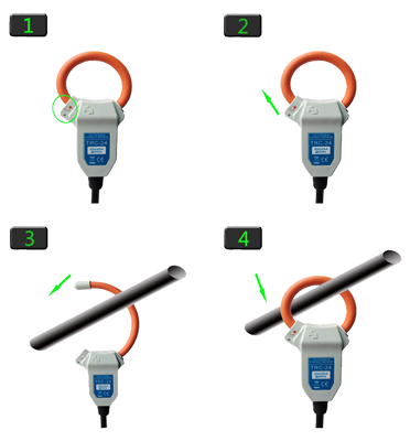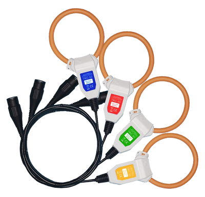 Widok zestawu 4 cewek Rogowskiego TRC do współpacy z analizatorem jakości energii Mi550