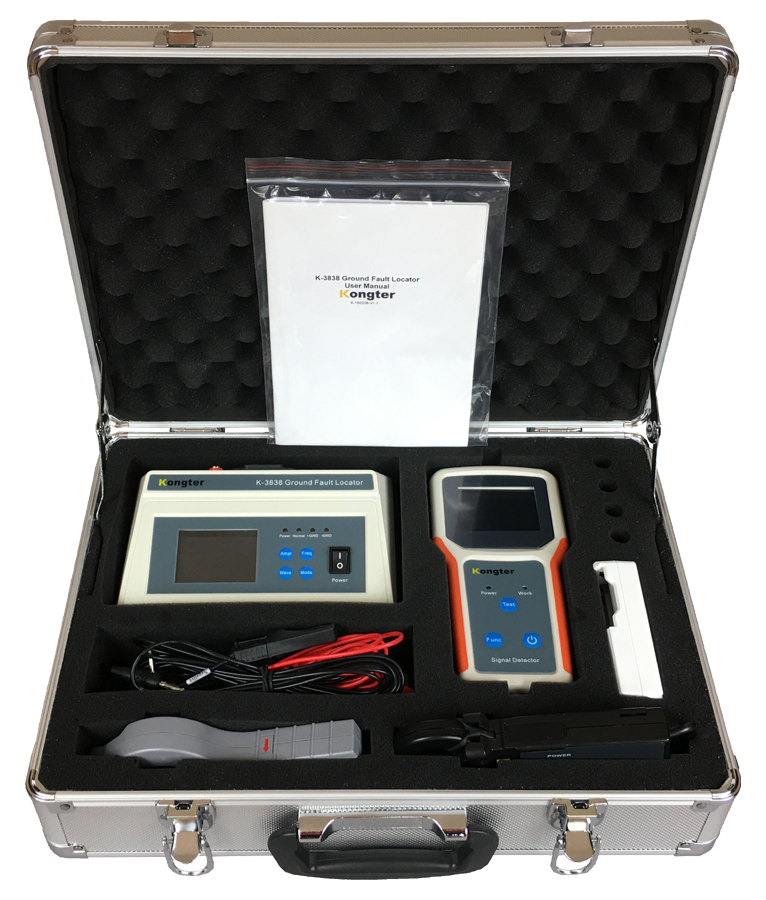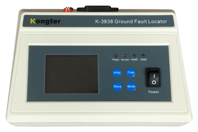 Model K-3838 jest najnowszą generacją lokalizatora zwarć do ziemi opracowaną przez firmę Kongter, służącą do szybkiego wykrycia obecności zwarcia i następnie jego punktowego zlokalizowania - do wykorzystania w systemach DC, gdzie kable elektryczne na skutek obrażeń izolacji zaczynają przewodzić prąd do ziemi.