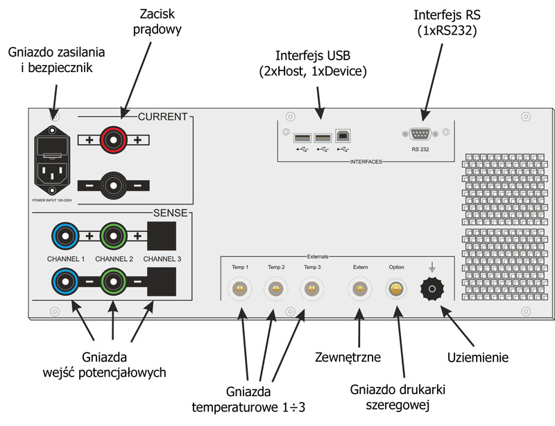 Widok płyty tylnej (dla wersji 2-kanałowej) |