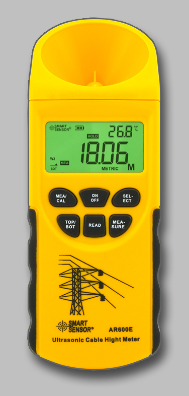 Przyrząd AR600E wykorzystuje ultradźwięki do pomiaru wysokości przewodów linii napowietrznych.