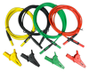 Zestaw 4 bezpiecznych przewodów pomiarowych, długość 3m + 4 krokodylki (czerwony, zielony, żółty, czarny). CAT III 1000V, CAT IV 600V, 10A