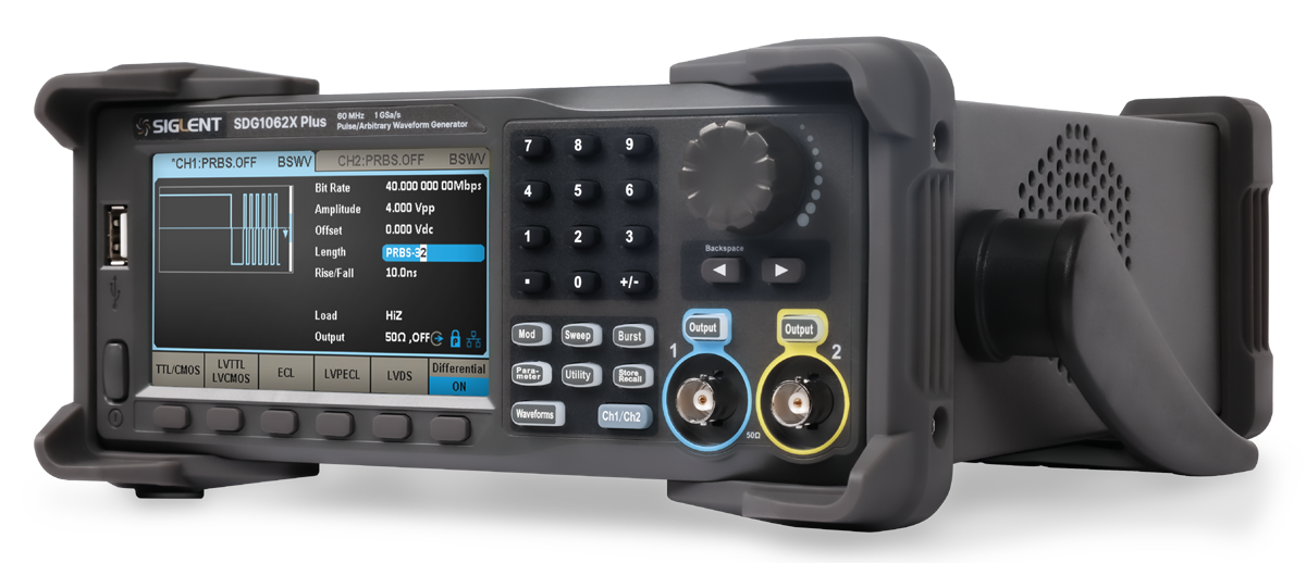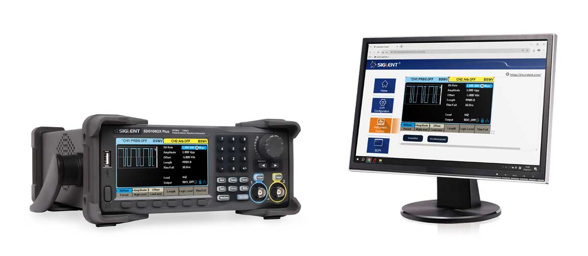 Seria SDG1000X Plus firmy SIGLENT to generatory dwukanałowe przebiegów funkcyjnych/arbitralnych o maksymalnej szerokości pasma 60 MHz, z częstotliwością próbkowania 1GSa/s i 16-bitową rozdzielczością pionową.