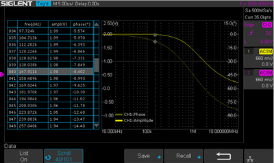 skanować odpowiedź amplitudy i fazy w funkcji częstotliwości obiektów, i wyświetlać