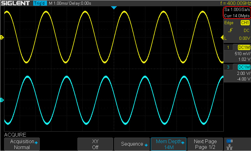 Gdy używane są wszystkie kanały, wtedy każdy kanał ma szybkość próbkowania 500 MSa/s