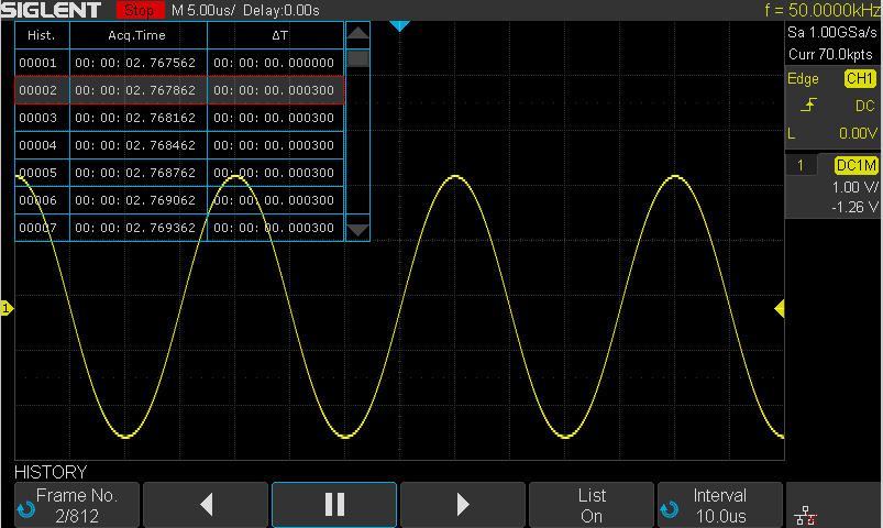 SDS1000X-E wyświetla dekodowanie poprzez listę zdarzeń.