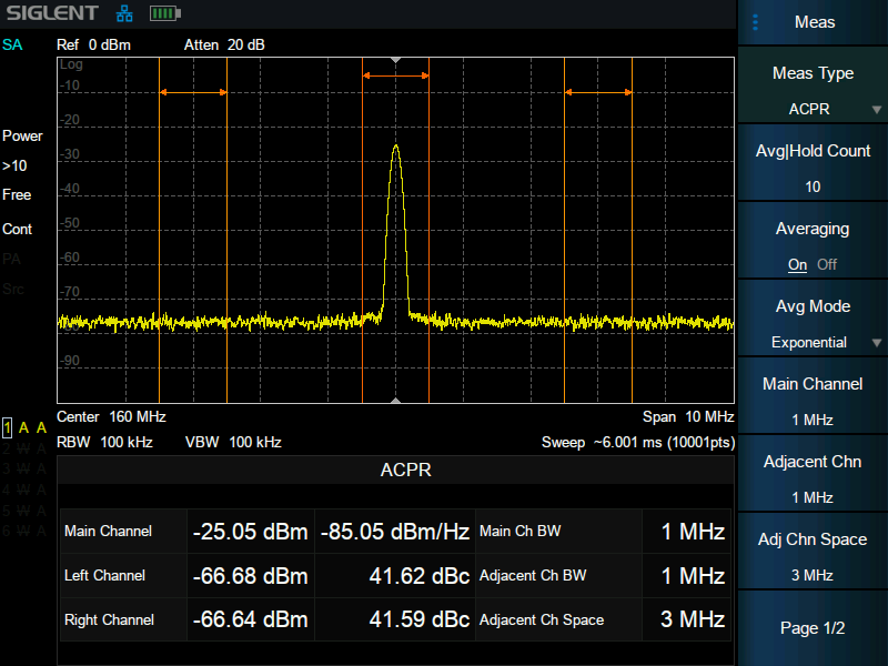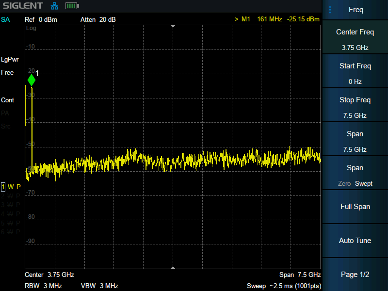 100 kHz~3.6/ 7.5 GHz niezależne źródło, -40 dBm ~ 0 dBm (SW) |