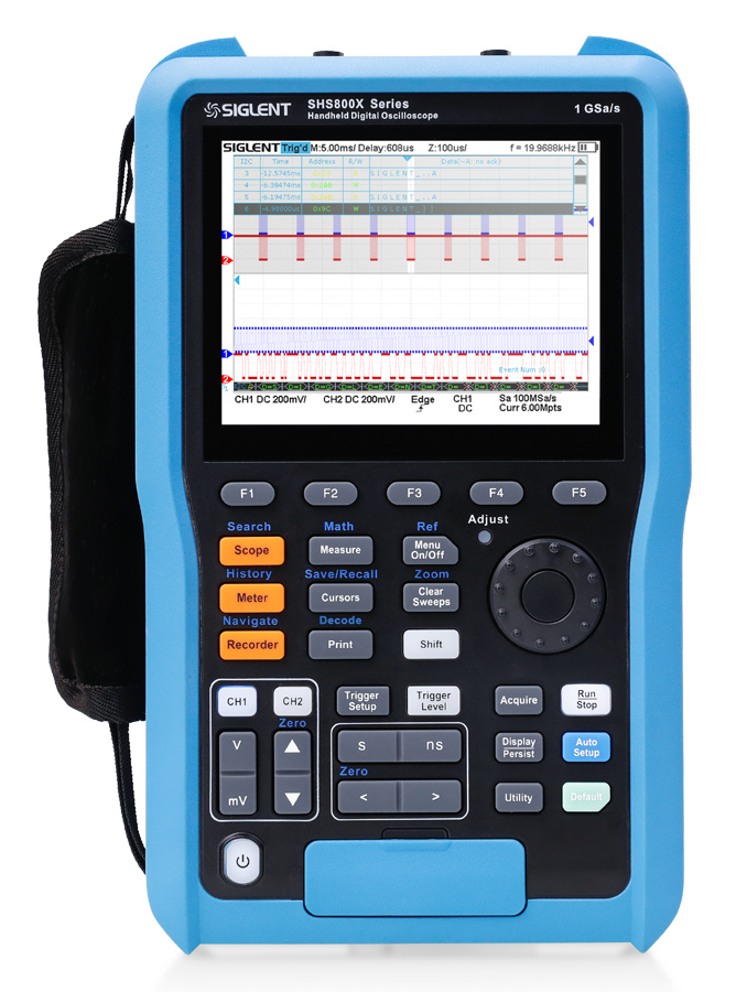 Seria SHS800X to ręczne, cyfrowe oscyloskopy Siglenta, posiadają 2 analogowe