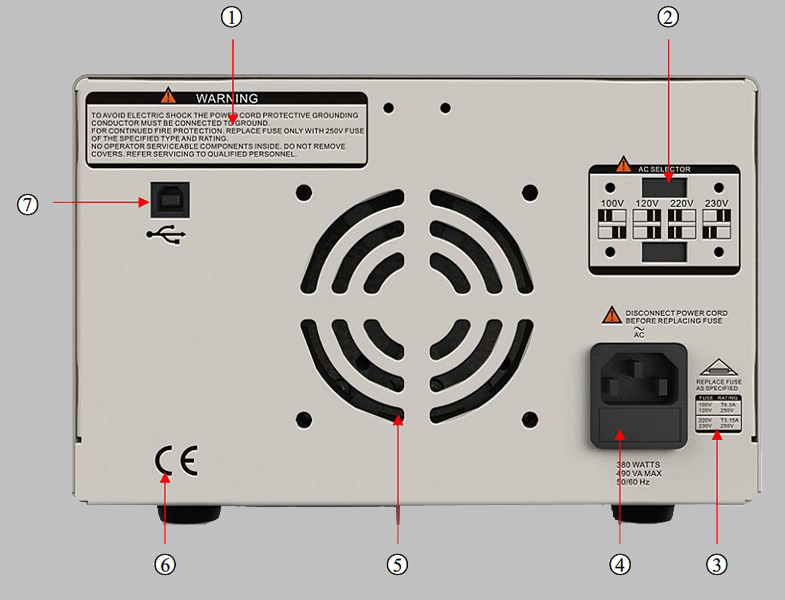 Widok tylnej płyty zasilacza SPD3303C