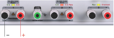 Funkcja szeregowa i równoległa pozwala na łączenie dwóch kanałów w jedno wyjście rozszerzając możliwości wyjść, zwiększając w ten sposób zakres zastosowania zasilacza.