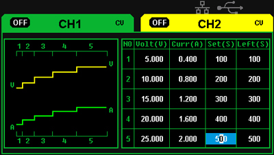 Programowane zasilacze serii SPD3000X mogą zapisać lub wywołać z wewnętrznej pamięci 5 grup parametrów