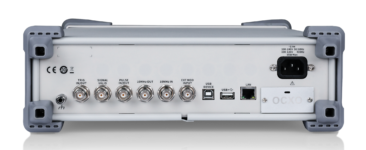 Zakres częstotliwości CW 9k - 4GHz; zakres poziomów -140 dBm ~ +26 dBm; rozdzielczość częstotliwości 0,001Hz , szum fazy -120 dBc/Hz przy 1GHz, 20kHz offset; 5 calowy TFT ekran dotykowy; z wewnętrzną modulacją IQ 60MHz |
