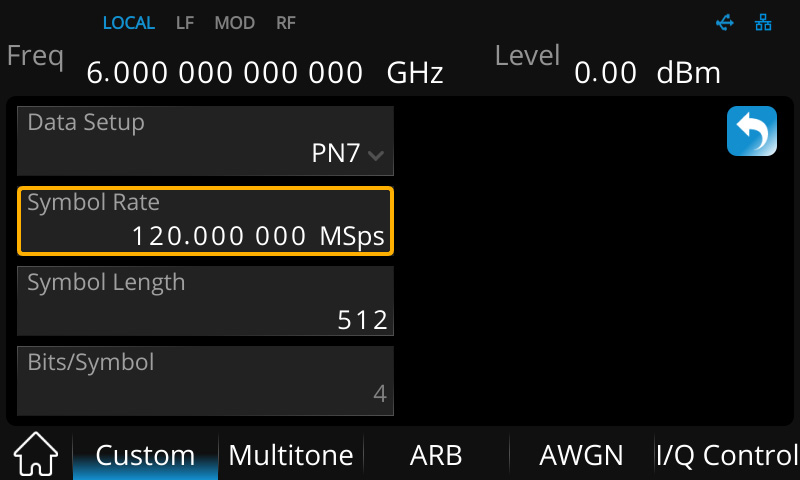 Zakres częstotliwości CW 9k - 6GHz; zakres poziomów -140 dBm ~ +26 dBm; rozdzielczość częstotliwości 0,001Hz , szum fazy -120 dBc/Hz przy 1GHz, 20kHz offset; 5 calowy TFT ekran dotykowy; z wewnętrzną modulacją IQ 60MHz |