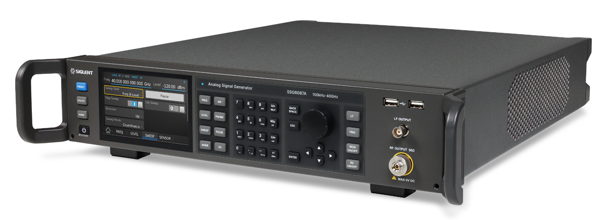 Generator sygnału mikrofalowego SSG6083A/SSG6085A/SSG6087A ma zakres częstotliwości wyjściowej od 100 kHz do 13,6/20/40 GHz,