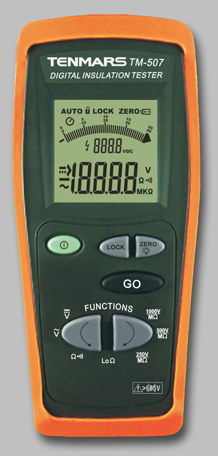 - jednoczesne wskazanie napięcia testu i wyniku rezystancji izolacji