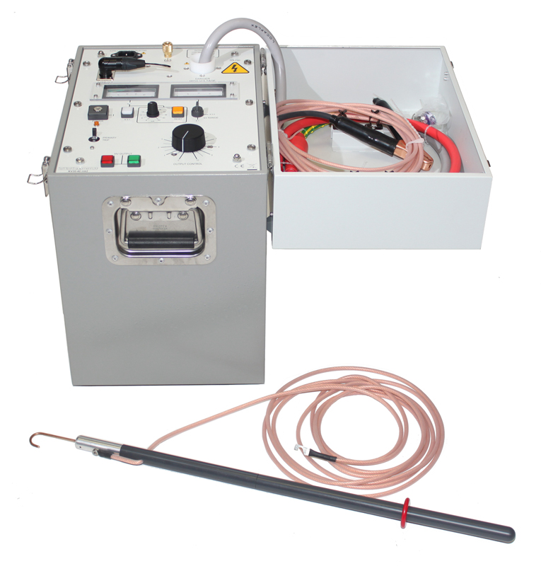 Przyrząd jest dostarczany w kompaktowej, przenośnej obudowie z podłączonym na stałe WN wyjściowym