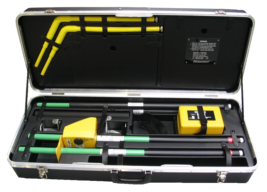- tyczka z analogowym miernikiem napięcia wraz z kablem uziemiającym