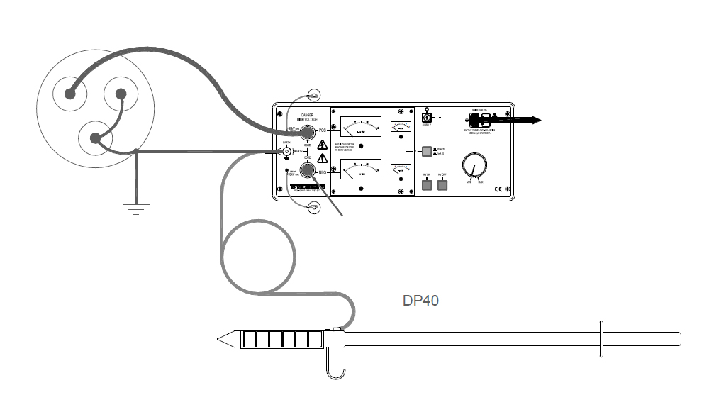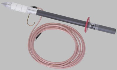 Przyrząd PT30-10 mk2 jest wyposażony w ręczną tyczkę rozładowującą DP40 pozwalającą na